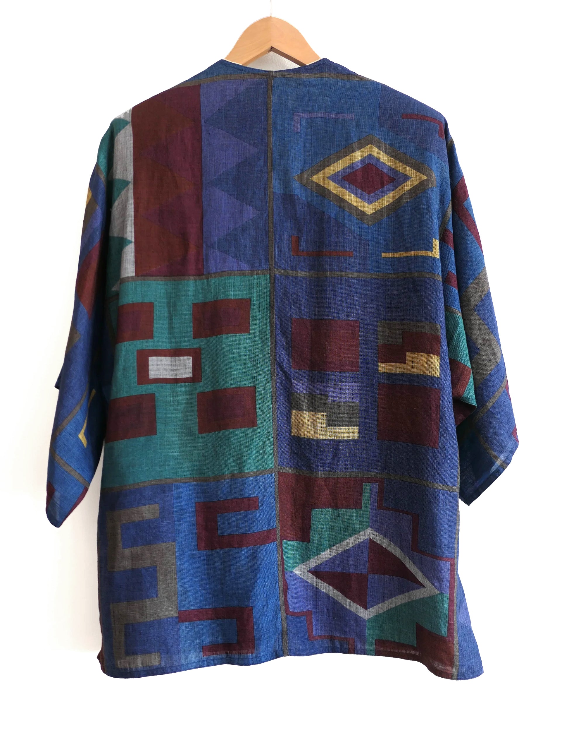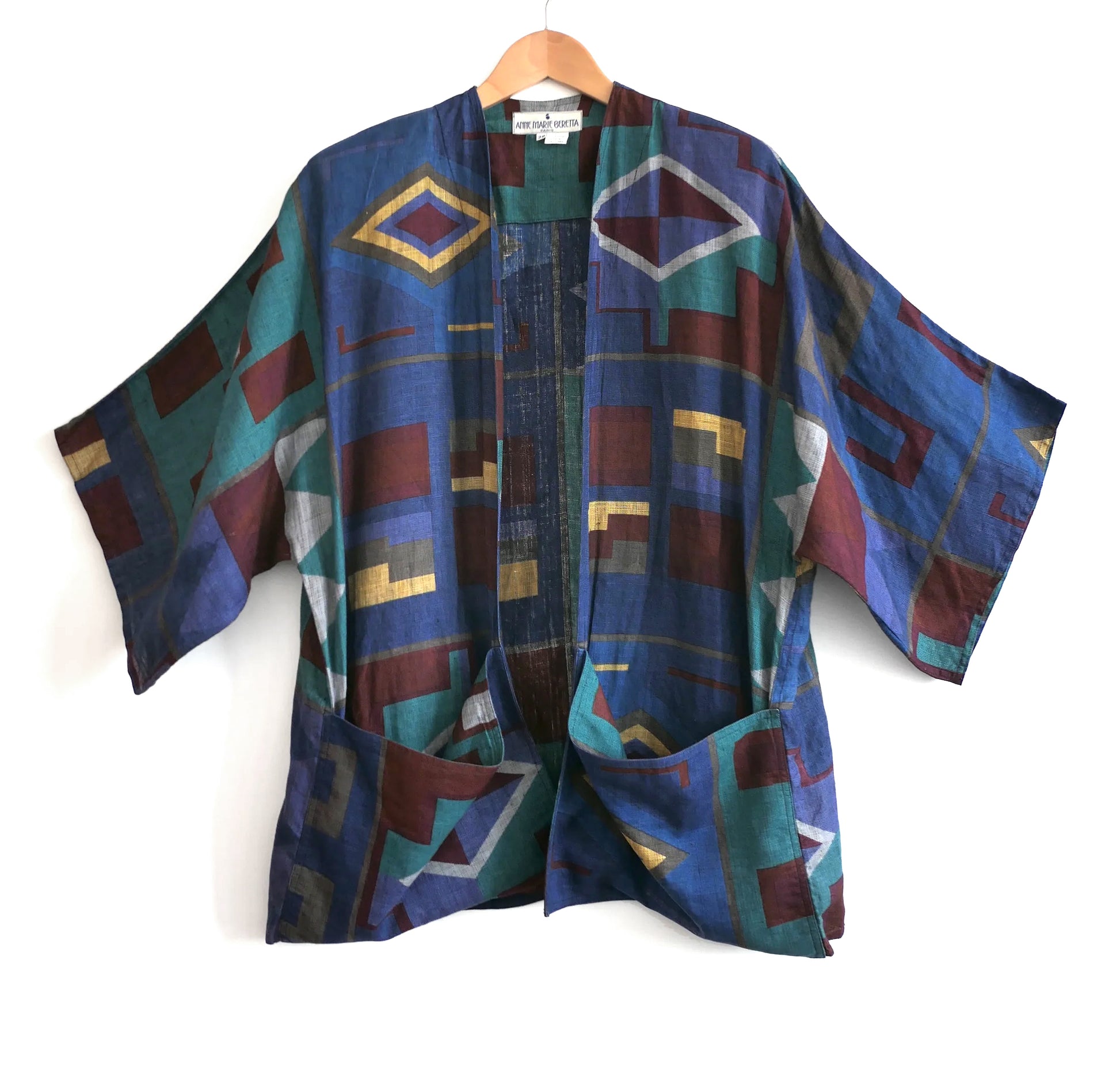 Haori kimono style cut, shoulder pads, 3/4 sleeves, 2 large patched pockets on each side, SS 1984