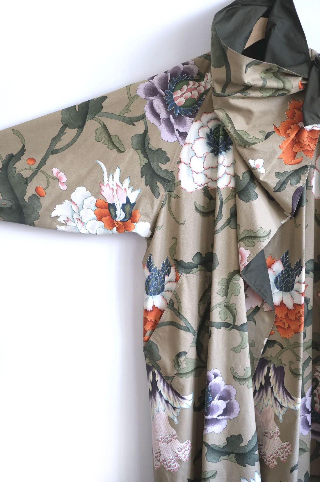 Buckled wrapped front, large pockets with piping, plain dark green lining, FW 1985-86