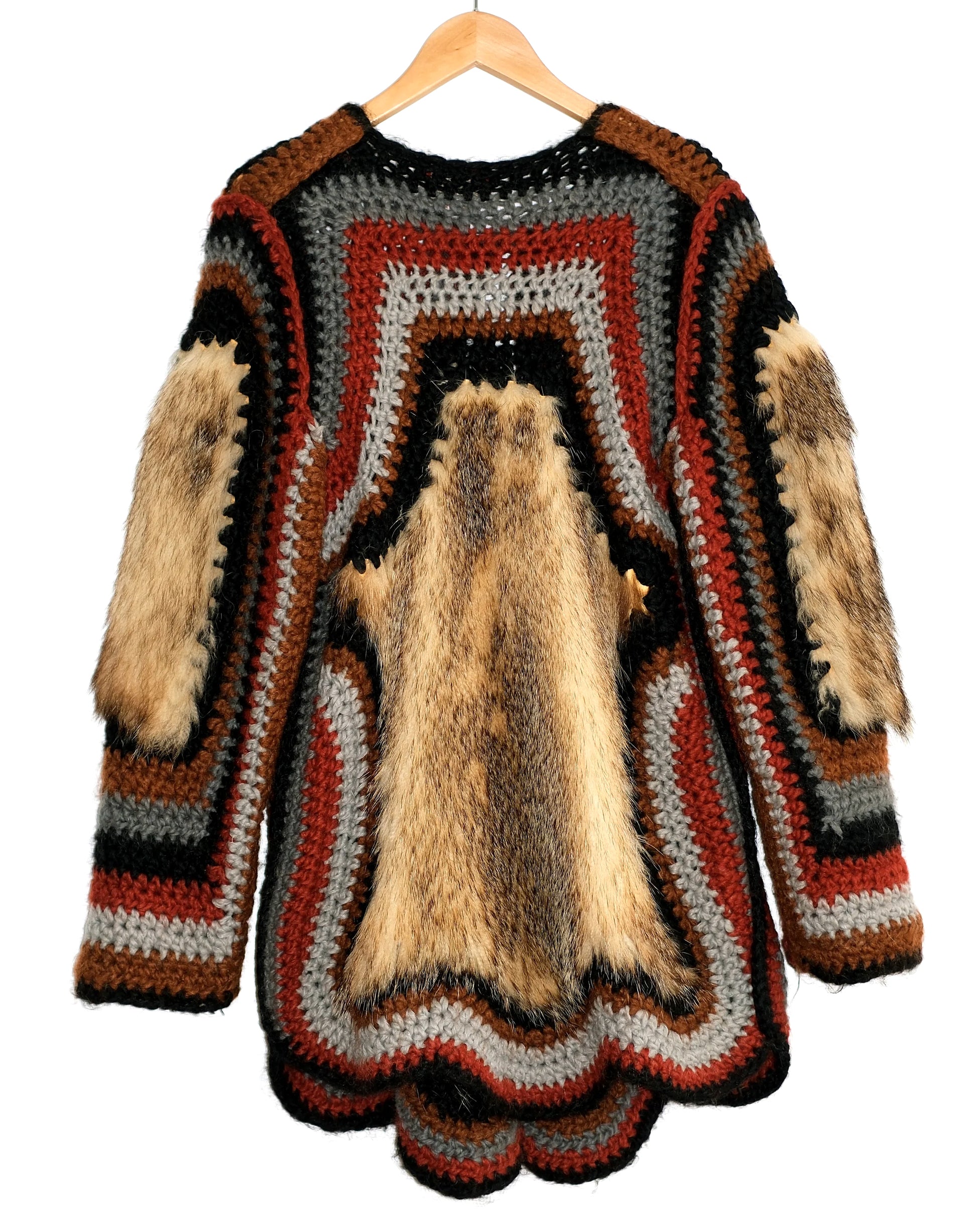 Description: Round neck, with fur inlays at the front, sleeves and back, side pockets