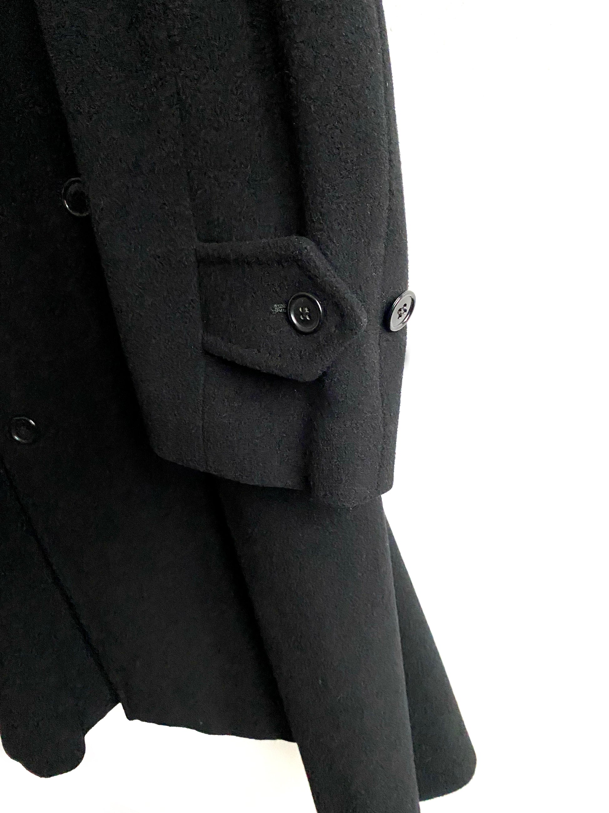 Classic double breasted men's coat, pleated back with buttoned half-belt, circa 1990.