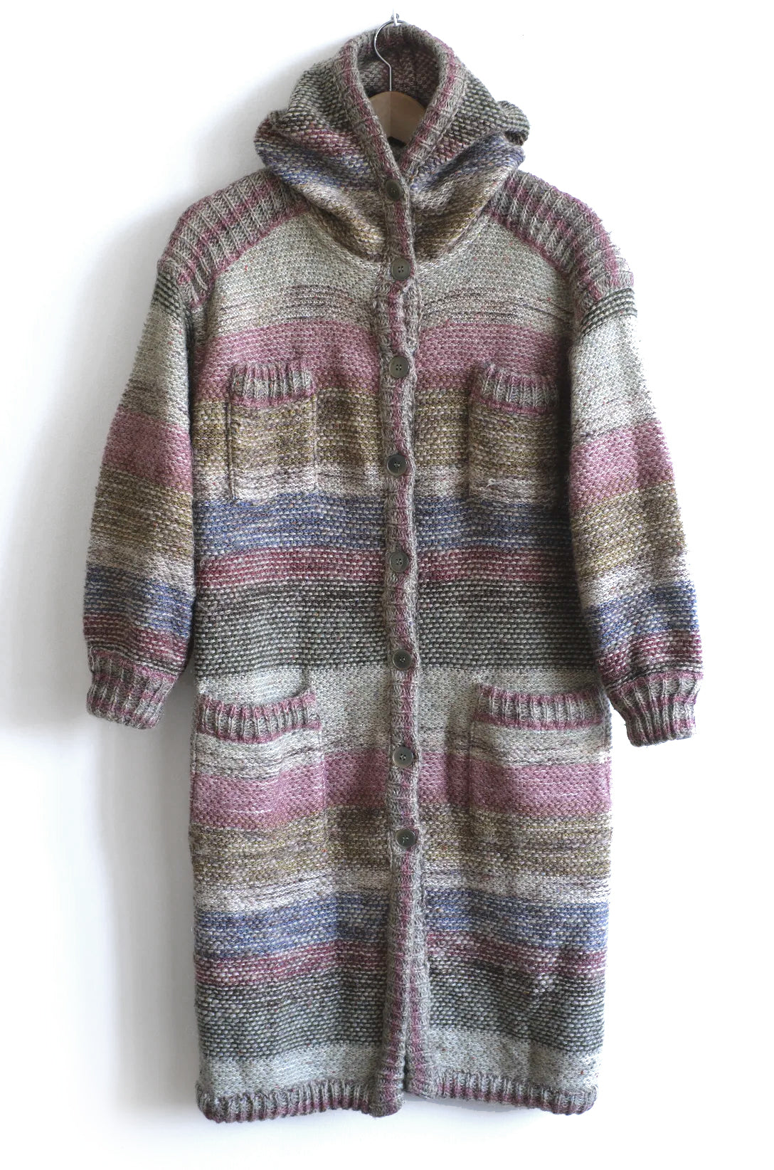 Hooded coat with four flat pockets and front buttons, ribbed shoulder yoke