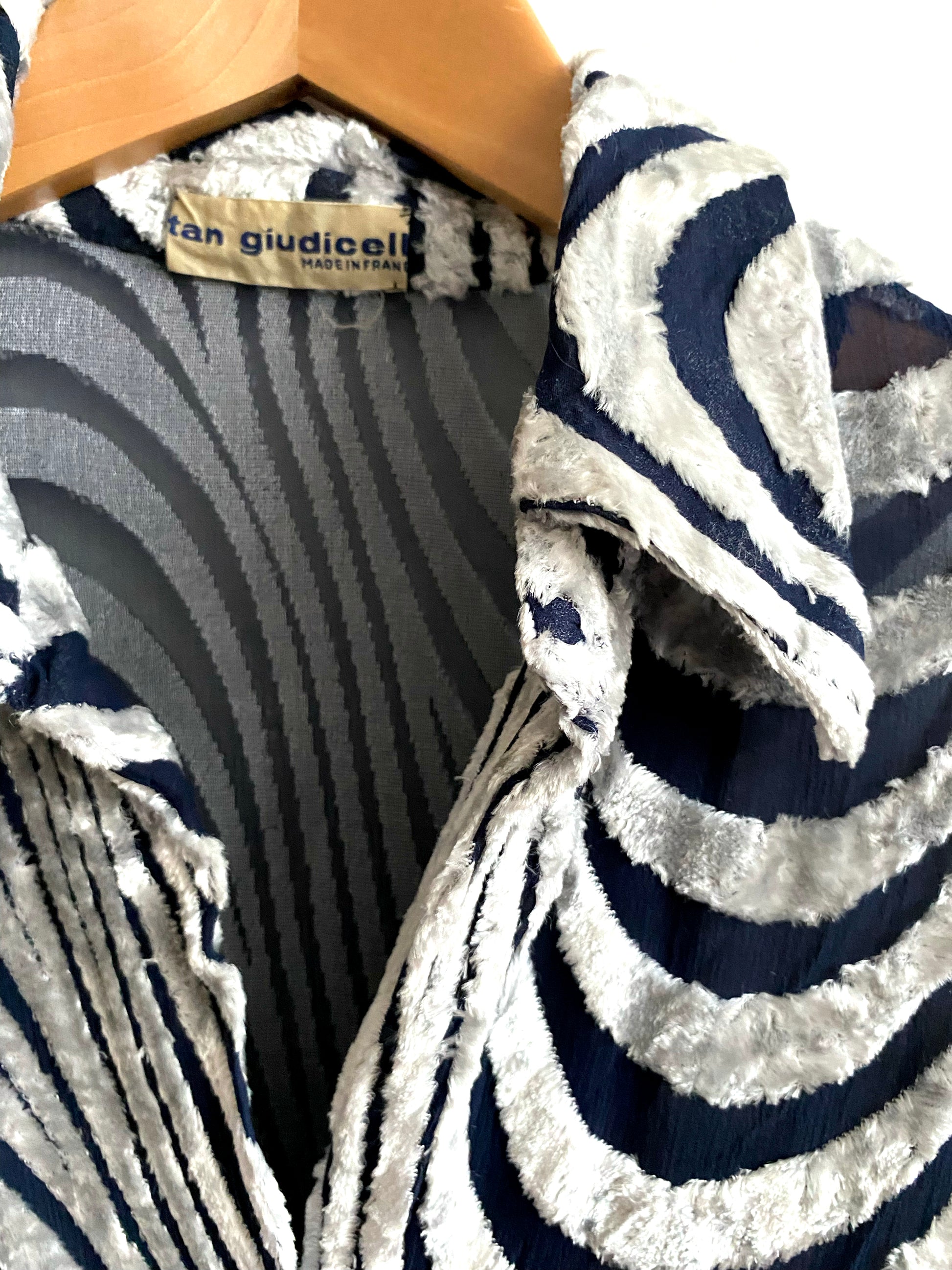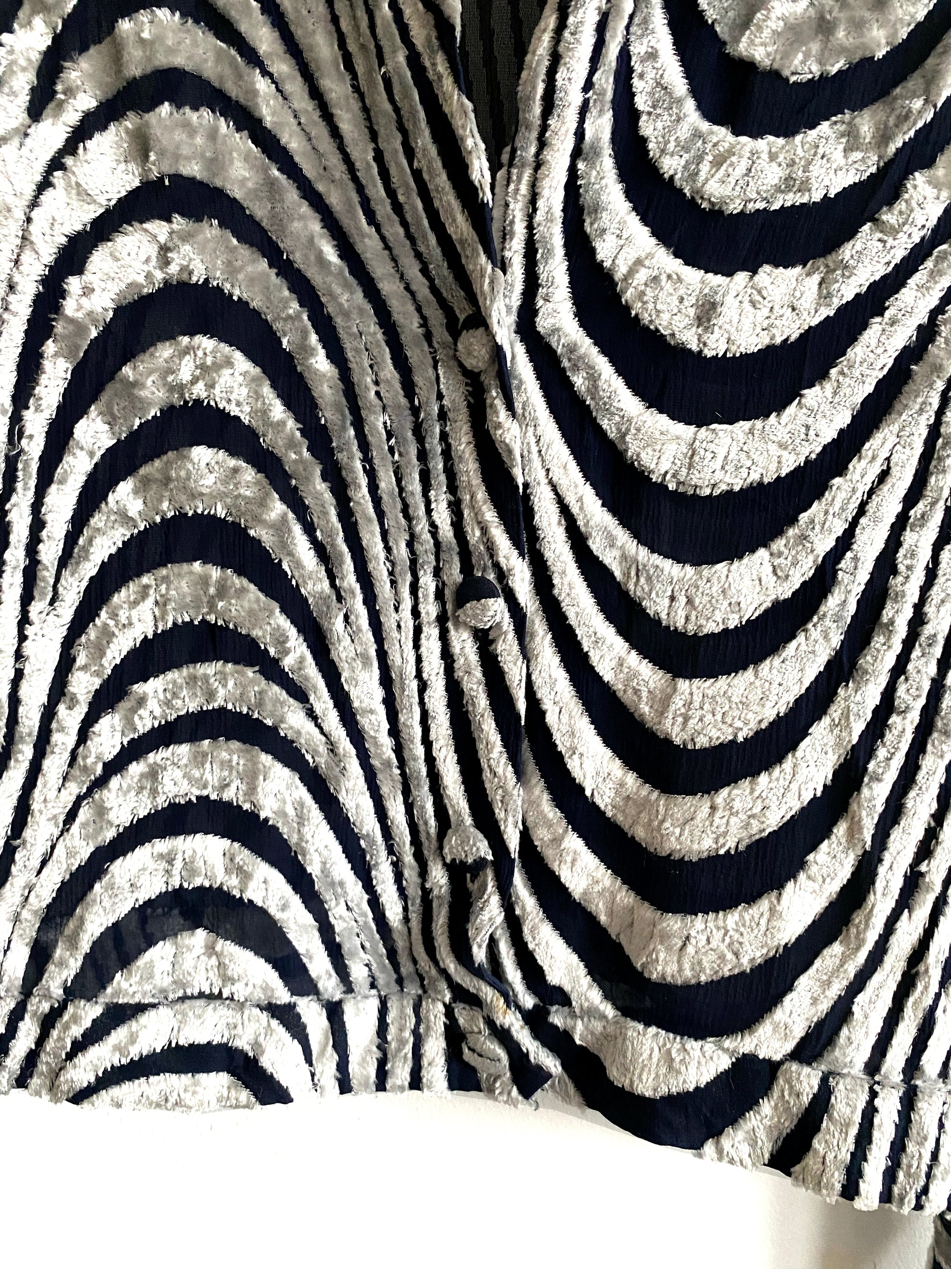 Short jacket shirt, front buttoned, devoré velvet panne, 1970.